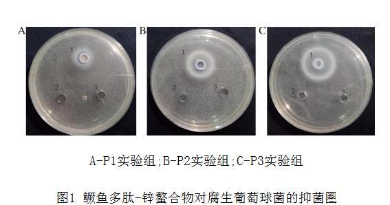 表1鱖魚多肽-鋅螯合物對腐生葡萄球菌的抑菌圈直徑