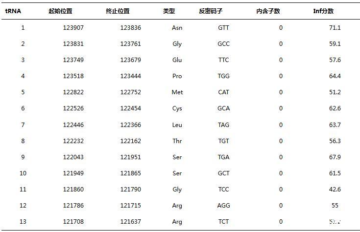 表1噬菌體PJNB028基因組中的tRNA基因
