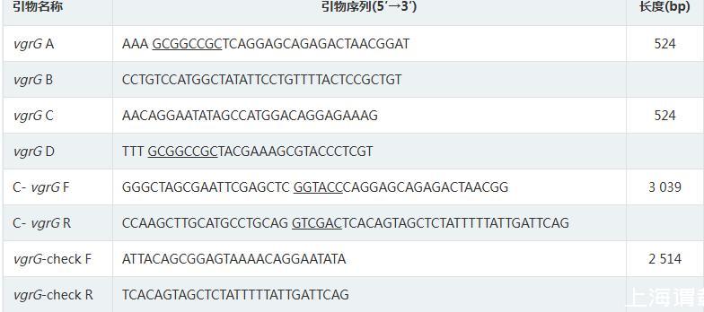 vgrG序列擴增與CΔvgrG株PCR鑒定