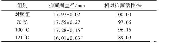 表2高溫處理對SCB2505代謝物抑菌活性的影響