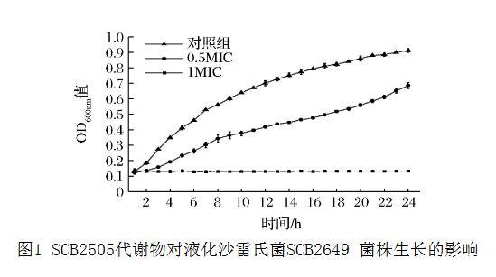 圖1 SCB2505代謝物對液化沙雷氏菌SCB2649菌株生長的影響