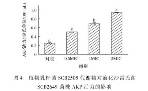 圖4植物乳桿菌SCB2505代謝物對液化沙雷氏菌SCB2649菌株AKP活力的影響