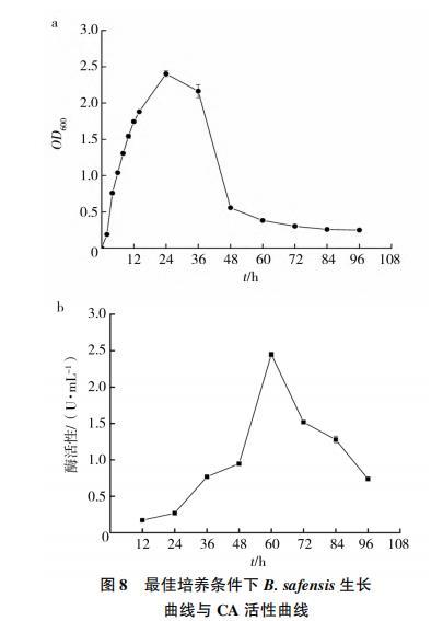 2.7最佳培養(yǎng)條件下B.safensis生長及其產(chǎn)CA特性