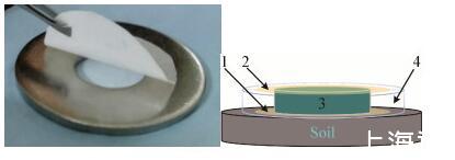圖3 Trap裝置及示意圖[65]Figure 3 Image and diagram of the trap[65]注:1:底膜(孔徑0.2-0.6μm);2:頂膜(孔徑0.03μm);3:無菌瓊脂或結(jié)冷膠培養(yǎng)基;4:塑料或金屬墊圈Note:1:Bottom membrane filter(0.2-0.6μm pore size);2:Top membrane filter(0.03μm pore size);3:Agar or gellan gum;4:Plastic or metal washer