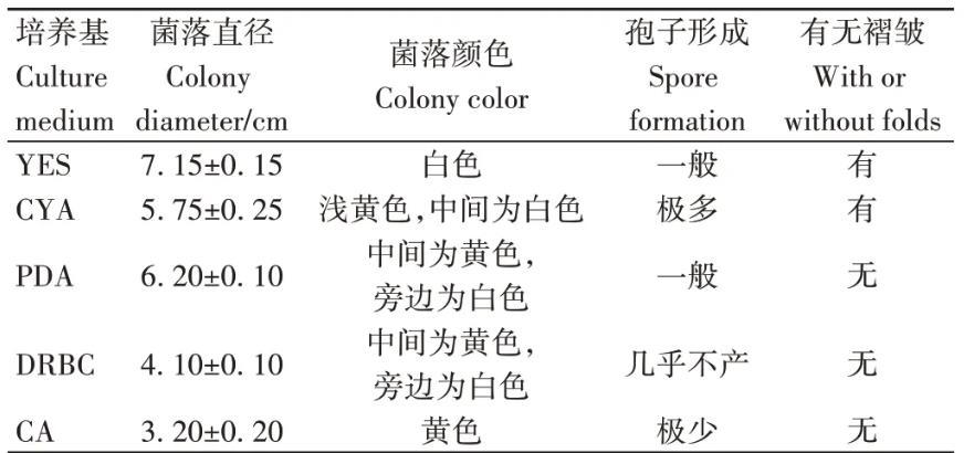 表1硫色曲霉在不同培養(yǎng)基上第8天的生長情況