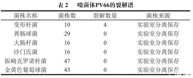 如表2所示,通過點(diǎn)斑實(shí)驗(yàn)測(cè)定裂解譜,結(jié)果顯示該噬菌體可裂解10株變形桿菌中的4株,對(duì)實(shí)驗(yàn)室分離的沙門噬菌、糞腸球菌、大腸桿菌和阪奇克羅諾桿菌未表現(xiàn)出裂解活性。表明噬菌體可裂解部分變形桿菌,其裂解效力將在后續(xù)實(shí)驗(yàn)中進(jìn)一步研究。
