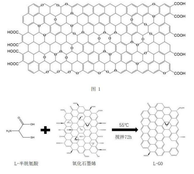 使用L-半胱氨酸作為還原劑,對氧化石墨烯(GO)進行表面改性,還原GO為L-半胱氨酸對氧化石墨烯,其原理是利用L-半胱氨酸中的硫醇基團與GO中游離的羥基和羧基發(fā)生化學反應,形成無毒和無害的產物水分子。