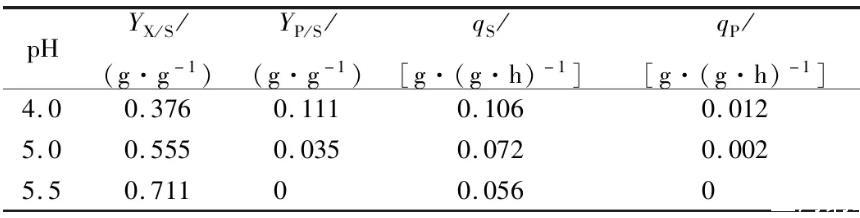 表1不同pH值下S.albulus M-Z18恒化培養(yǎng)(D=0.04 h-1)動力學(xué)參數(shù)