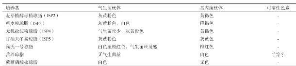 表1菌株在7種培養(yǎng)基上的菌落特征