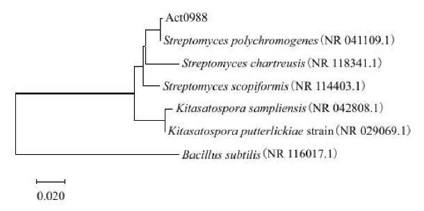 圖5 Act0988菌株16S rDNA系統(tǒng)發(fā)育樹