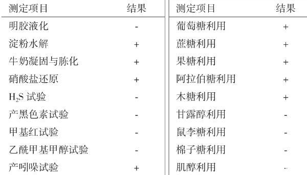 Act0988菌株的生理生化特性及碳源利用測(cè)定結(jié)果,見表2。