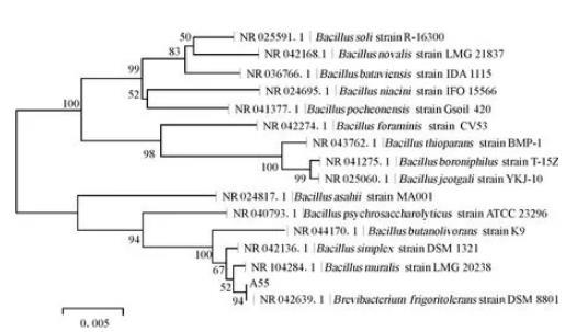 圖1菌株A55的系統(tǒng)發(fā)育樹
