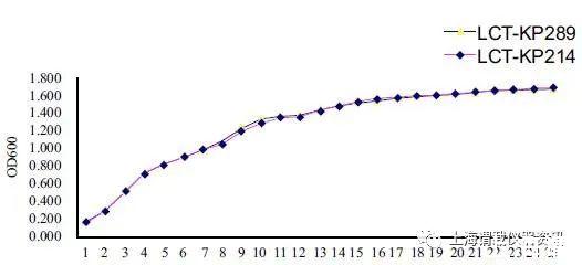 芬蘭的Bioscreen全自動(dòng)生長(zhǎng)曲線分析儀測(cè)試了兩種肺炎克雷伯菌(LCT-KP289、LCT-KP214的)在培養(yǎng)基中的的生長(zhǎng)曲線圖,培養(yǎng)時(shí)間為25h,每隔60分鐘測(cè)試一次OD600值,培養(yǎng)過(guò)程中搖晃、生長(zhǎng)及OD值的測(cè)試全是自動(dòng)完成的,從而能夠長(zhǎng)時(shí)間準(zhǔn)確的測(cè)試出兩種不同類型的肺炎克雷伯菌的生長(zhǎng)情況,獲得相應(yīng)的生長(zhǎng)曲線圖。