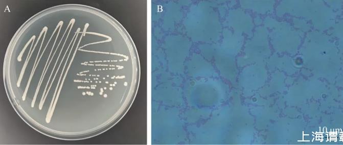 圖1木質(zhì)素分解菌YP-2023-9菌株形態(tài)(A)及其革蘭氏染色顯微形態(tài)(B)