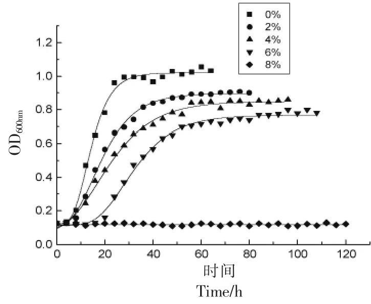 圖1 NaCl對(duì)短乳桿菌生長的影響