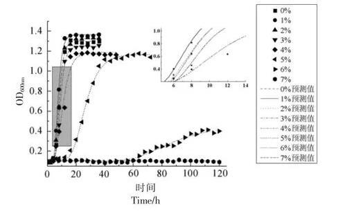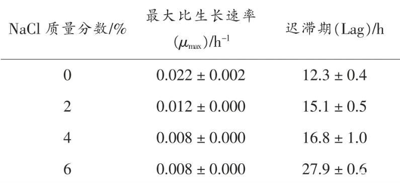 表1不同NaCl條件下短乳桿菌生長動(dòng)力學(xué)參數(shù)