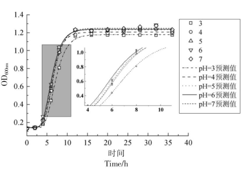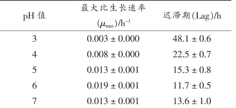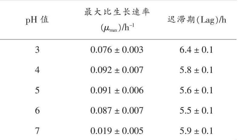 表2不同pH值下短乳桿菌生長動(dòng)力學(xué)參數(shù)