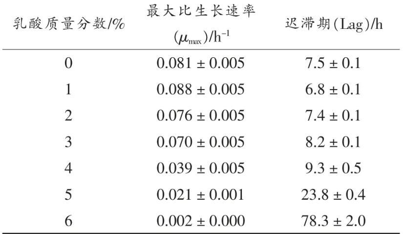 表5不同乳酸條件下對(duì)釀酒酵母生長動(dòng)力學(xué)的影響