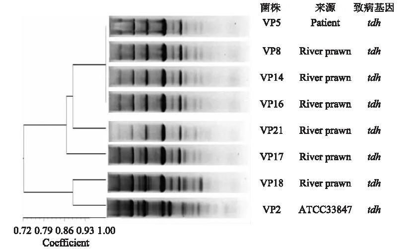 耐藥性致病副溶血性弧菌Vp 18與非耐藥性致病性副溶血性弧菌Vp 2的ERIC-PCR圖譜歸為一類,表明這兩株菌的亞型相似,也說明耐藥性基因可能來自質粒上,這也為副溶血性弧菌的耐藥機制的研究提供了一定的參考。