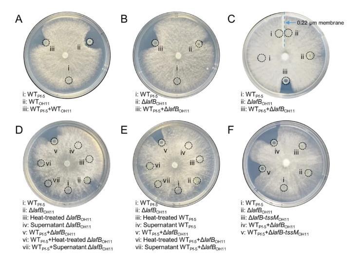 自從發(fā)現(xiàn)T4ASS是一種殺滅細菌的裝置以來,它的功能在很大程度上被認為是細菌種間相互作用中的抗菌劑。這種觀點是否適用于所有情況?我們有興趣了解裝有T4ASS的土壤細菌能否與其生態(tài)相關微生物建立"合作"互動關系,這是微生物互動關系中一個重要但研究較少的領域。為了驗證這一假設,我們選擇了實驗室可用的產(chǎn)酶溶桿菌OH11和假單胞菌蛋白原Pf-5作為模式菌株。