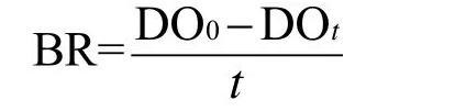 其中DO0,DOt分別為樣品培養(yǎng)前后溶解氧濃度,t為培養(yǎng)時(shí)間。