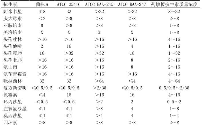 各濃度的菌株A在BCSB+均不能生長,說明該培養(yǎng)基缺少該菌株生長必需的某種營養(yǎng)成分,或該培養(yǎng)基中有抑制菌株A生長的成分。葡萄糖、蔗糖、乳糖及牛肉膏等為培養(yǎng)物提供碳源,酪蛋白胰酶消化物、蛋白胨/大豆蛋白胨、大豆粉木瓜蛋白酶消化物和酵母提取物等為培養(yǎng)物提供氮源,氯化鈉維持滲透壓,酚紅為pH指示劑,結晶紫可抑制革蘭氏陽性菌及部分真菌生長,慶大霉素可抑制革蘭氏陰性菌及部分革蘭氏陽性菌生長。仔細分析表3不難發(fā)現,各培養(yǎng)基中的碳源、氮源及滲透壓調節(jié)劑基本一致,pH并無顯著性差別,可見BCSB+中并不缺少該菌株生長必需的某種營養(yǎng)成分,且菌株A為革蘭氏陰性菌。由此推斷,慶大霉素可能抑制了該菌的生長。