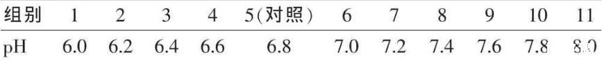 按配方配制好培養(yǎng)基后,用5%的NaOH或5%乙酸調(diào)節(jié)pH,按表1調(diào)節(jié)不同的pH,其中5號為原對照。