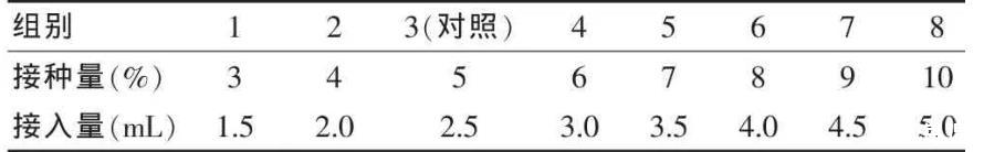按配方配制好培養(yǎng)基后,考查一級到二級,二級到三級的接種量,按表3選取考查不同的接種量,其中3號為原對照。