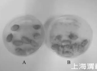 圖5 wt16在花生粒上對黃曲霉菌73生長的影響注:圖A為黃曲霉菌T3與wt16共培養(yǎng)的花生粒;圖B為經(jīng)由黃曲霉菌73侵染的花生粒。
