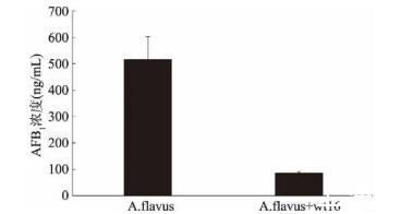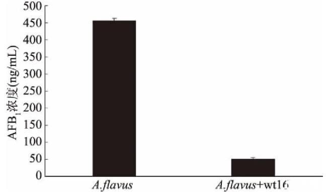圖4 wt16在花生粉上對黃曲霉菌73產(chǎn)毒的影響