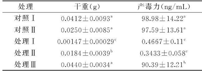 由表1可知,與對照Ⅰ相比,非脫羧勒克菌wt16上清液能抑制黃曲霉73菌的生長及產(chǎn)毒,進(jìn)行高溫處理后的上清液只能抑制黃曲霉73菌的產(chǎn)毒而不能抑制黃曲霉73菌的生長,非脫羧勒克菌wt16的死菌體對黃曲霉73菌沒有作用,而大腸桿菌的上清液(對照Ⅱ)不能抑制黃曲霉73菌產(chǎn)毒,說明非脫羧勒克菌wt16上清中有某種代謝產(chǎn)物對黃曲霉菌株73菌的產(chǎn)毒和生長有抑制作用,并且其代謝產(chǎn)物中有某些可以抑制黃曲霉73菌生長的產(chǎn)物在經(jīng)高溫處理后會失去抑制作用,而高溫對能抑制產(chǎn)毒的代謝物質(zhì)無影響。