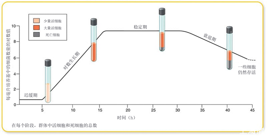 這個(gè)階段中,細(xì)菌密度達(dá)到最大。