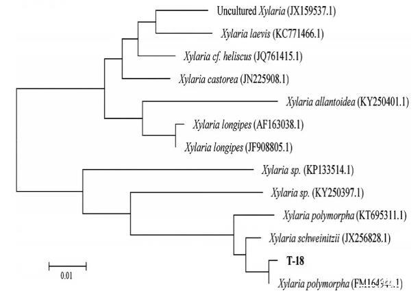 圖4 T-18的16 s基因序列構(gòu)建的系統(tǒng)發(fā)育樹