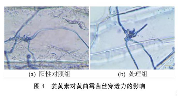 圖4姜黃素對黃曲霉菌絲穿透力的影響