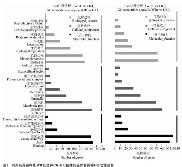 圖5貝萊斯芽孢桿菌WB處理和CK西瓜植株間差異基因的GO功能注釋