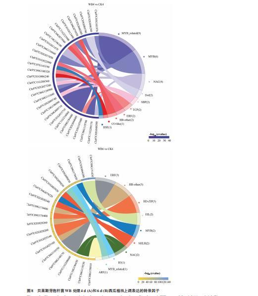 圖8貝萊斯芽孢桿菌WB處理4 d(A)和6 d(B)西瓜植株上調(diào)表達(dá)的轉(zhuǎn)錄因子