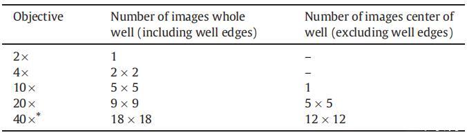 表1 Cellavista 96孔微孔板每孔圖像數(shù)。