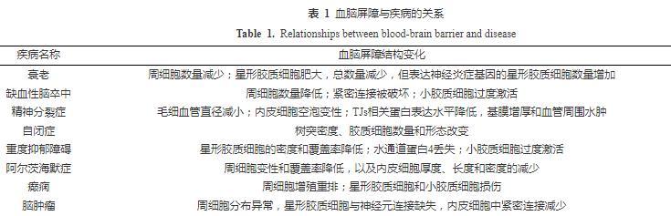 表1血腦屏障與疾病的關(guān)系