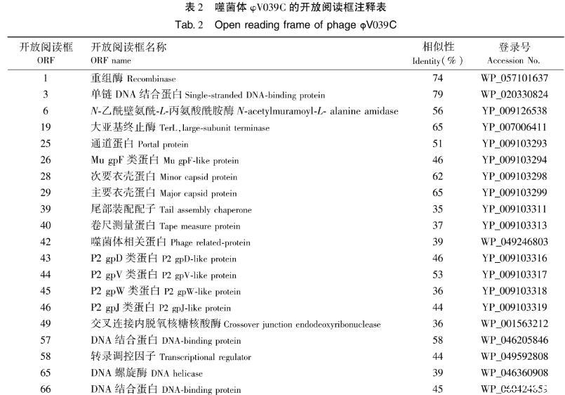 2.6噬菌體φV039C功能性O(shè)RF的分析