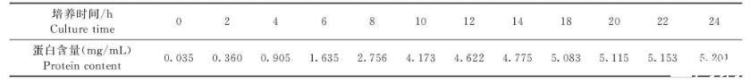 在1.6中測(cè)定OD600 nm值時(shí),同時(shí)吸取適量菌液,12 000 r/min離心10 min,用0.22μm細(xì)菌濾器過(guò)濾,制得外毒素粗提取液。分別測(cè)定OD280 nm和OD260 nm值,根據(jù)蛋白濃度經(jīng)驗(yàn)公式計(jì)算不同培養(yǎng)時(shí)間點(diǎn)培養(yǎng)液的外毒素蛋白質(zhì)含量(ρ)。