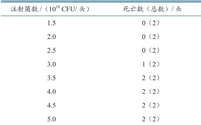 表3 CVCC43005株對豬最小致死劑量測定