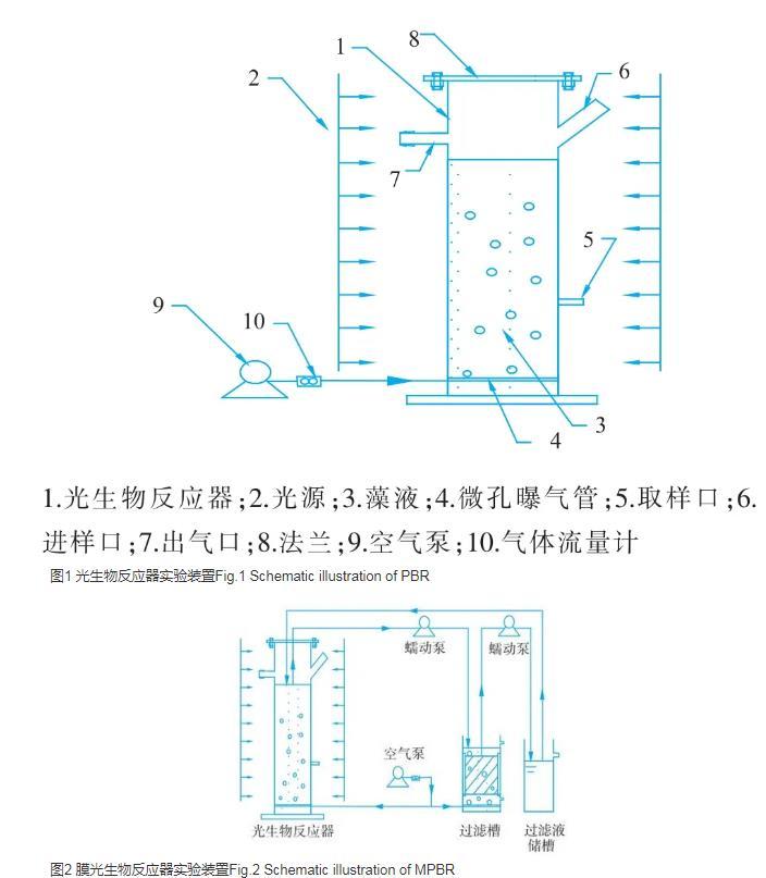 目前微藻培養(yǎng)系統(tǒng)的兩種主要類型是開放式跑道池和封閉式光生物反應(yīng)器(photobioreactor,PBR)。傳統(tǒng)的PBR沒有固液分離功能,反應(yīng)器中的水力停留時間(hydraulic retention time,HRT)和微藻停留時間(microalgae retention time,MRT)是相同的,獲得的生物質(zhì)濃度較低,給后續(xù)采收過程帶來很大的難度。為解決這個問題,可在膜光生物反應(yīng)器(membrane photobioreactor,MPBR)模式下培養(yǎng)微藻。MPBR是微藻培養(yǎng)和采收的一種全新的方法,它將光生物反應(yīng)器同過濾器相耦合,進(jìn)而將HRT和MRT分開,實現(xiàn)固液分離。且膜過濾操作簡單,在微藻培養(yǎng)和采收方面的應(yīng)用越來越多,Su等人在MPBR中利用電廠污水培養(yǎng)柵藻;Bilad等人利用浸沒式微濾膜采收微藻生物質(zhì);同時MPBR中過濾液可以再循環(huán)用作微藻培養(yǎng)液。此外通過膜的過濾作用,提高藻產(chǎn)品生物量濃度,在采收過程中無需使用助凝劑和絮凝劑等化學(xué)藥品。