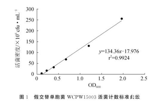 圖1假交替單胞菌WCPW15003活菌計(jì)數(shù)標(biāo)準(zhǔn)曲線