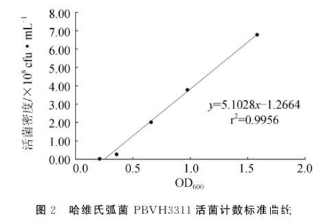 圖2哈維氏弧菌PBVH3311活菌計(jì)數(shù)標(biāo)準(zhǔn)曲線