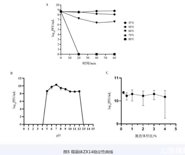 圖5噬菌體ZX14穩(wěn)定性曲線