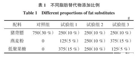 表1不同脂肪替代物添加比例