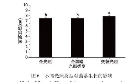 培養(yǎng)3 d后,菌落直徑與光照類型之間的關系如圖6所示。