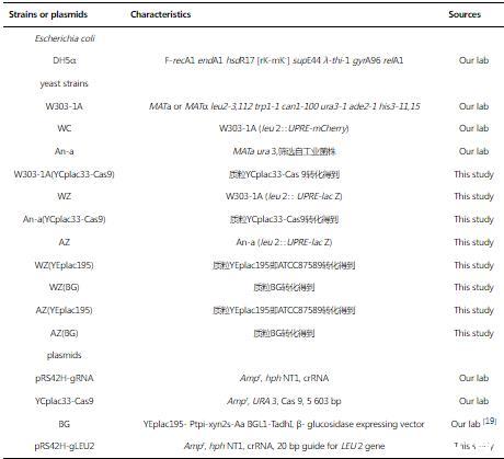 表1實驗所用菌株和質(zhì)粒