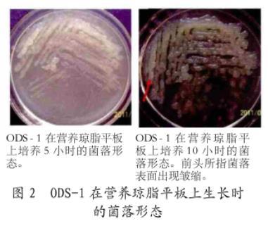 圖2 ODS-1在營(yíng)養(yǎng)瓊脂平板上生長(zhǎng)時(shí)的菌落形態(tài)