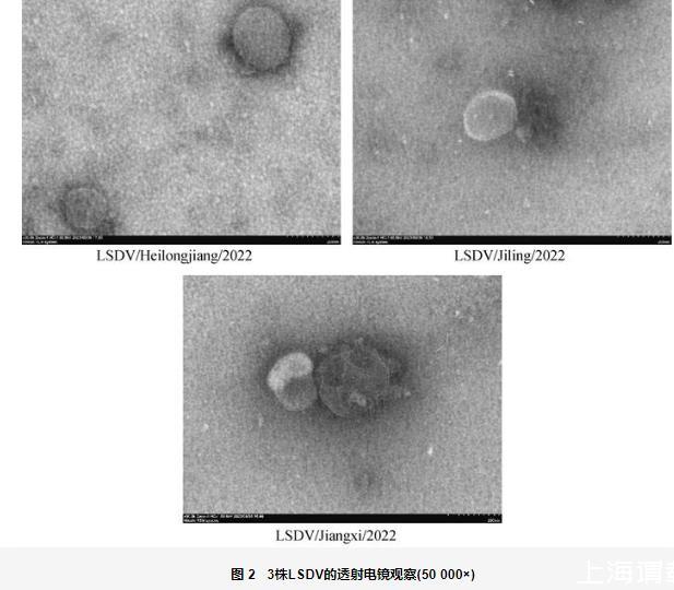 圖2 3株LSDV的透射電鏡觀察(50 000×)